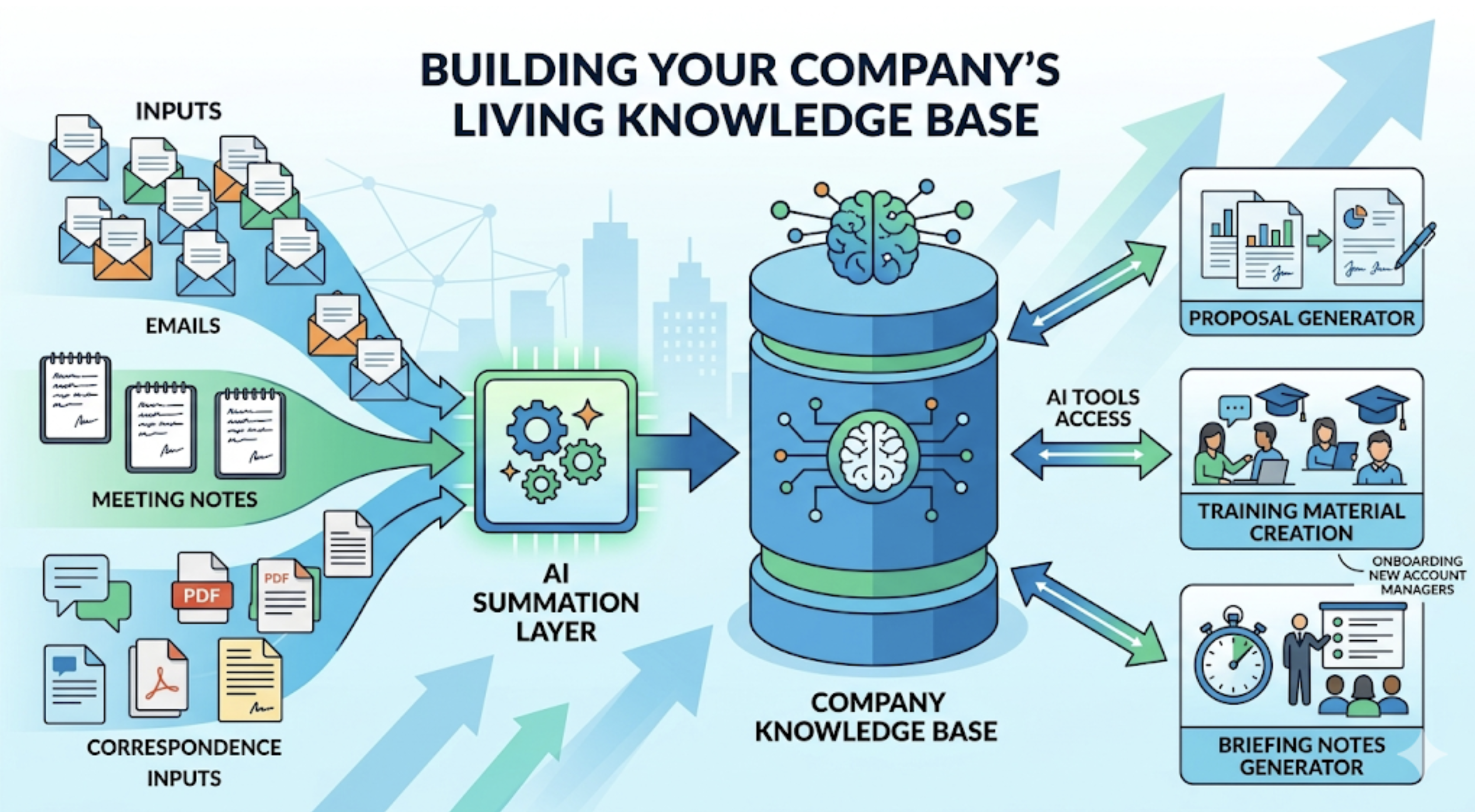 This information doesn't just sit there. It works for you. Your AI tools reference it to build more accurate proposals, generate instant briefing notes before meetings, and create tailored onboarding materials for new hires.